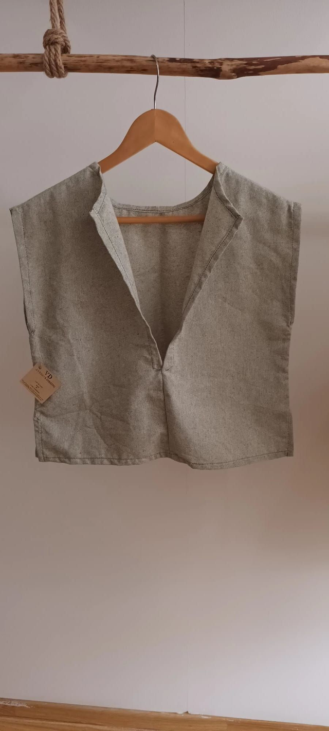 Top in Alentejo linen (90% cotton, 10% linen) with a round neckline at the front and flaps at the back.